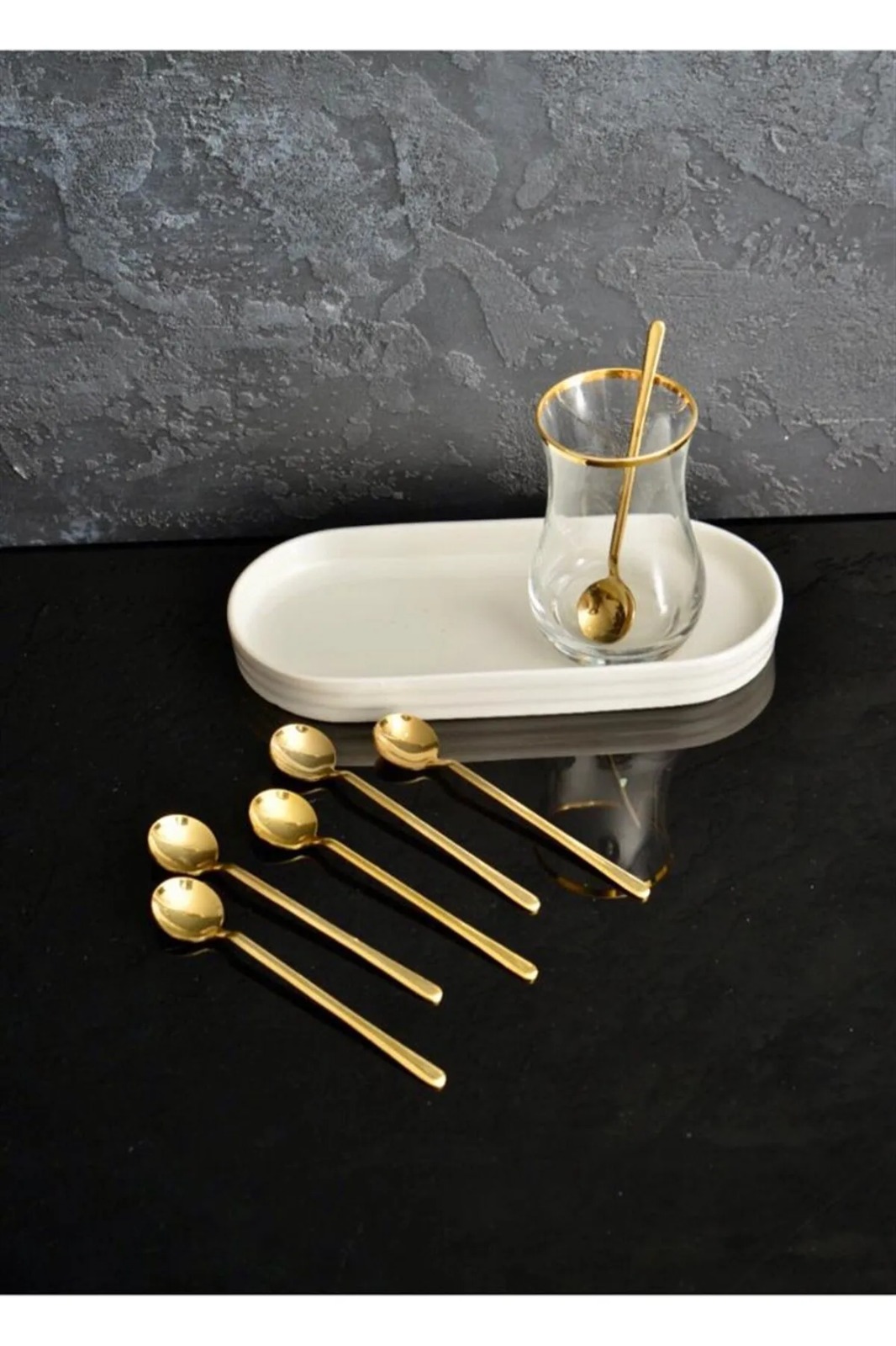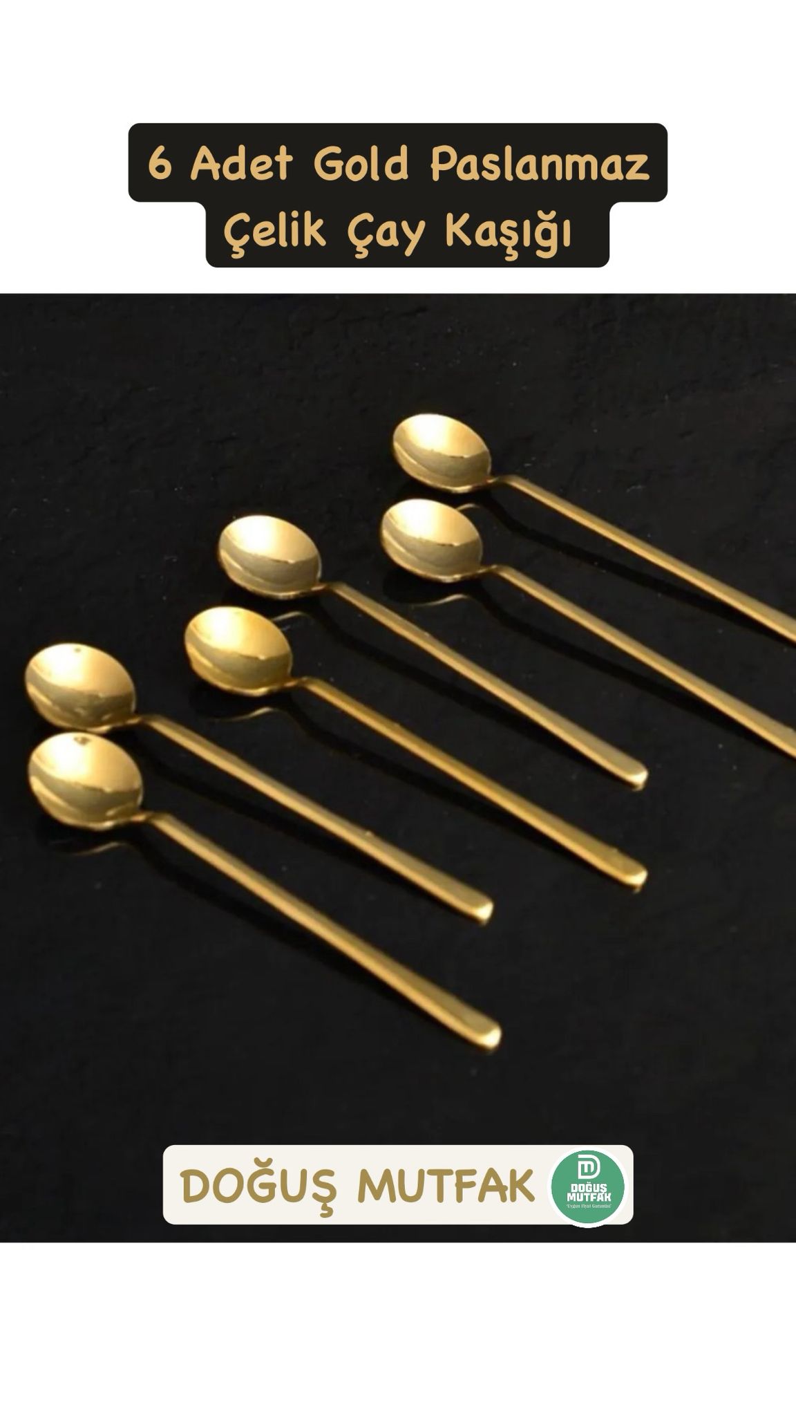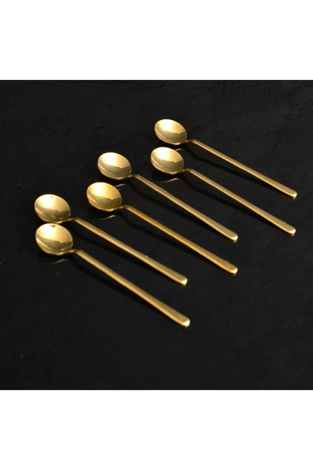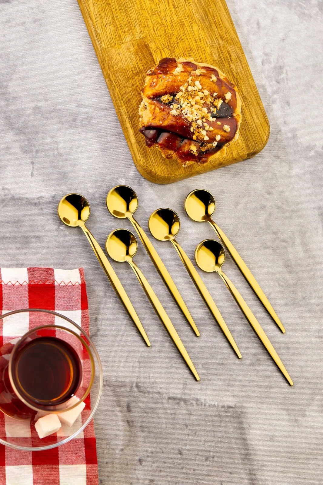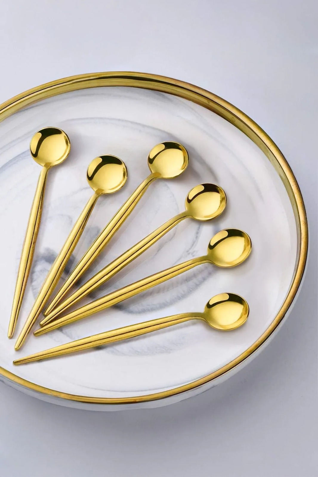 6’lı Lüks 18/10 Titanyum Gold Pırlanta Çay Kaşığı – Kararmaz, Parlak Paslanmaz Çelik, 13 cm